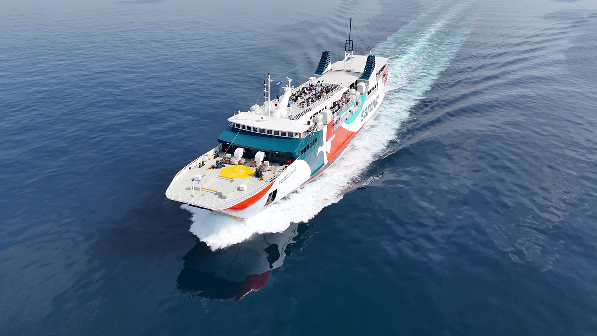 Poseidonas ferry connects Piraeus with Aegina, Agistri, Methana and Poros. It has loading/unloading platforms at both ends, meaning drivers always move forward during embarkation and disembarkation. It has a transport capacity of 1100 passengers and 80 vehicles. On its two decks passengers may be served either in indoor or outdoor areas with seats and bars. The ship is equipped with a platform for people with mobility difficulties to access the main deck.